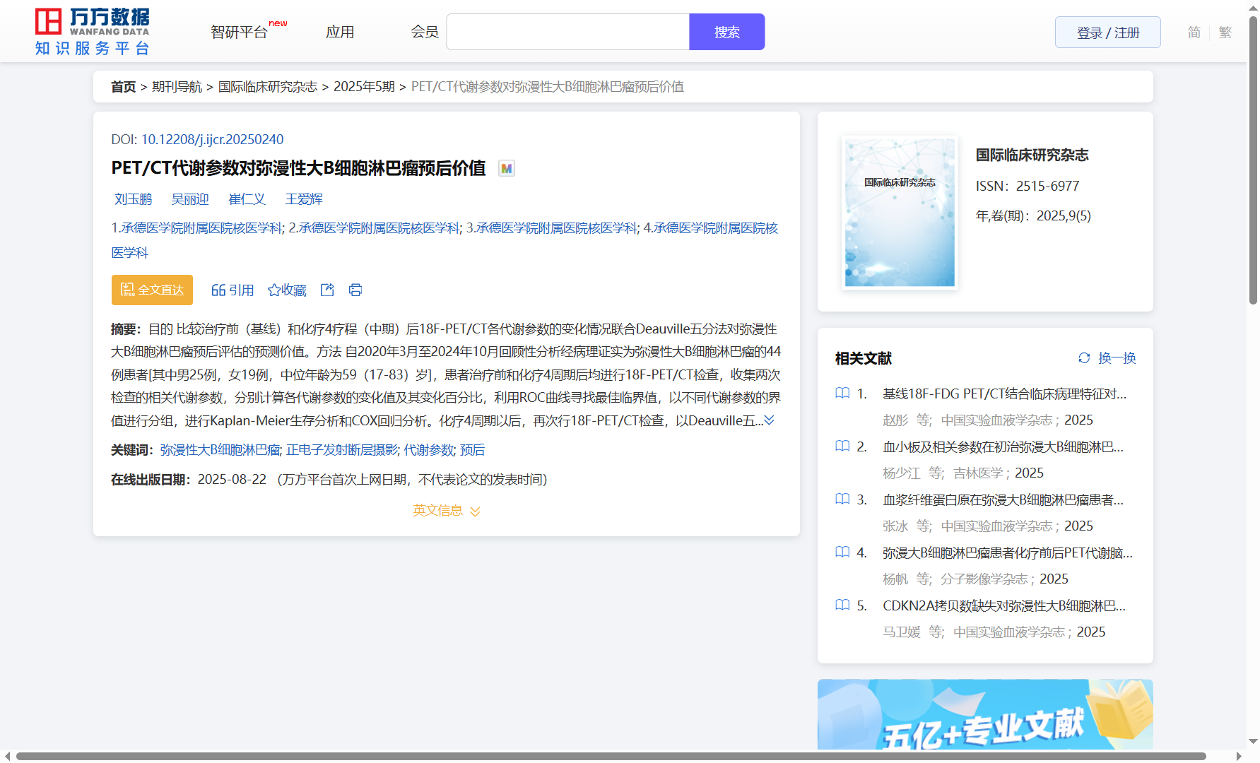 浏览量:1251 全文下载:【PDF】 万方数据(WANFANG DATA)